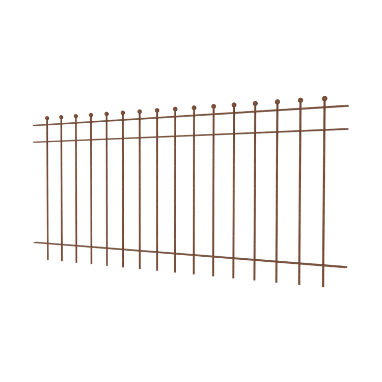 Un elemento di recinzione ha un totale di 16 barre con un diametro di 1 cm. Tre capriate orizzontali garantiscono una stabilità affidabile. Le punte delle palline sono alte 5 cm ciascuna.