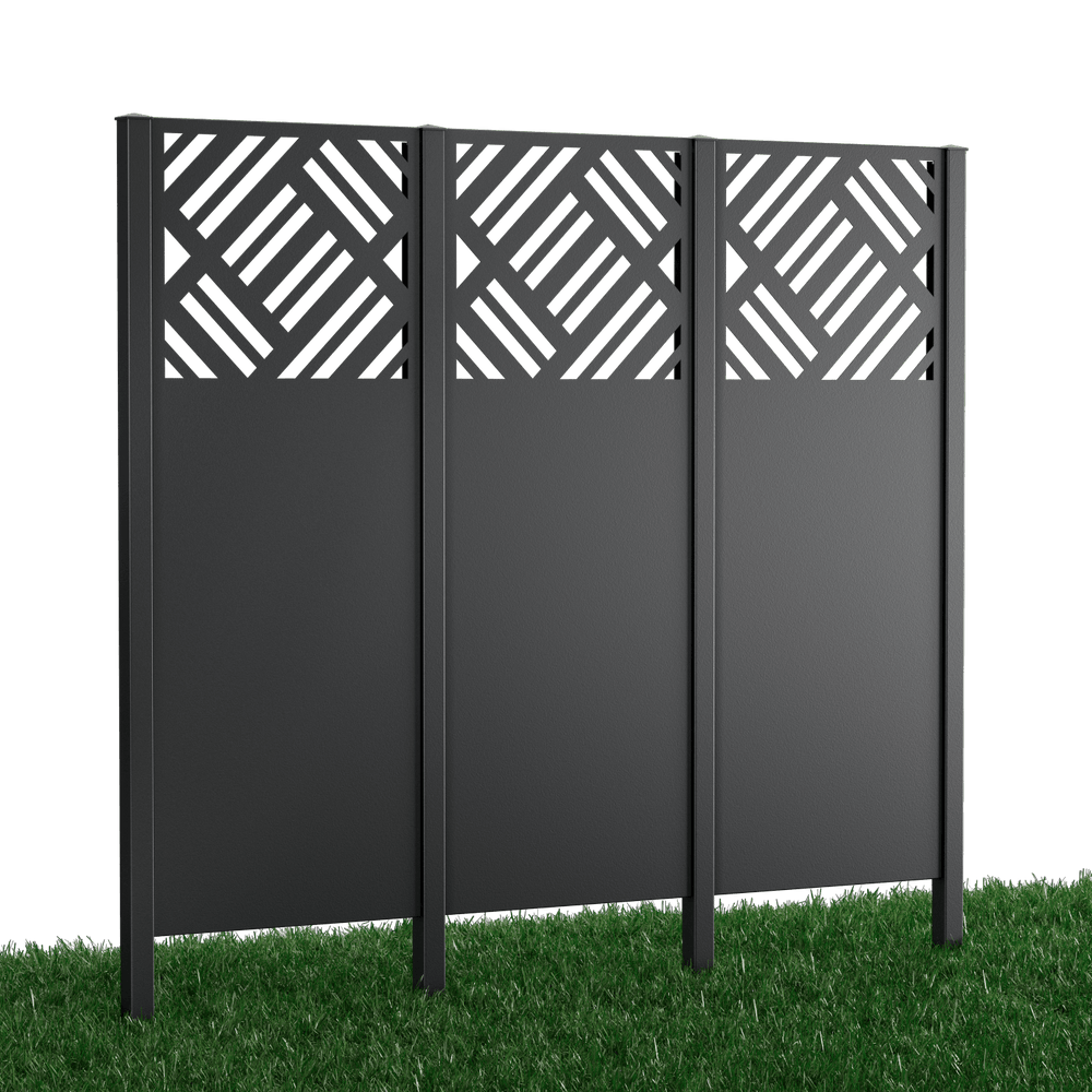 Il set completo di recinzione per privacy parziale "Amato" è decorato nella parte superiore con un motivo geometrico moderno. Scegli tra metallo verniciato a polvere (processo duplex) o acciaio Corten. Gli elementi privacy misurano singolarmente 158 x 60 cm.