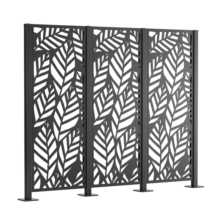 Il nostro set completo di recinzione per la privacy "Livenza" è progettato con un elaborato decoro a foglie su tutta la superficie. Scegli tra metallo verniciato a polvere (processo duplex) o acciaio Corten. Gli elementi privacy misurano singolarmente 158 x 60 cm.